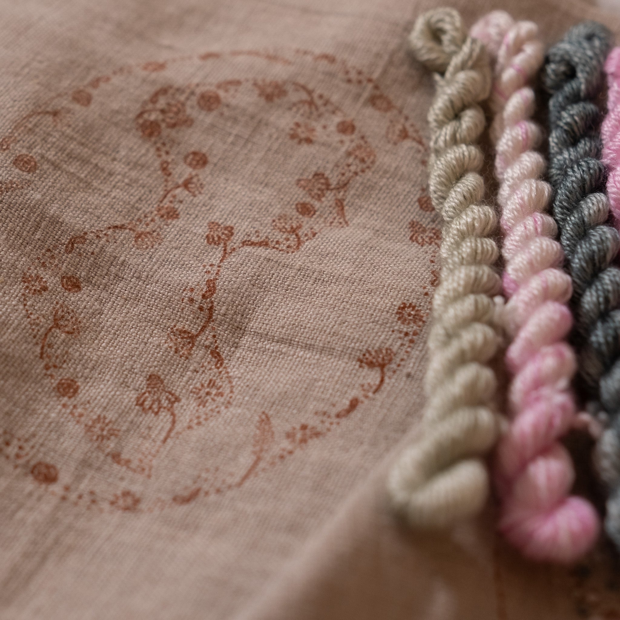 Pincushion pattern printed on linen with backing fabric
