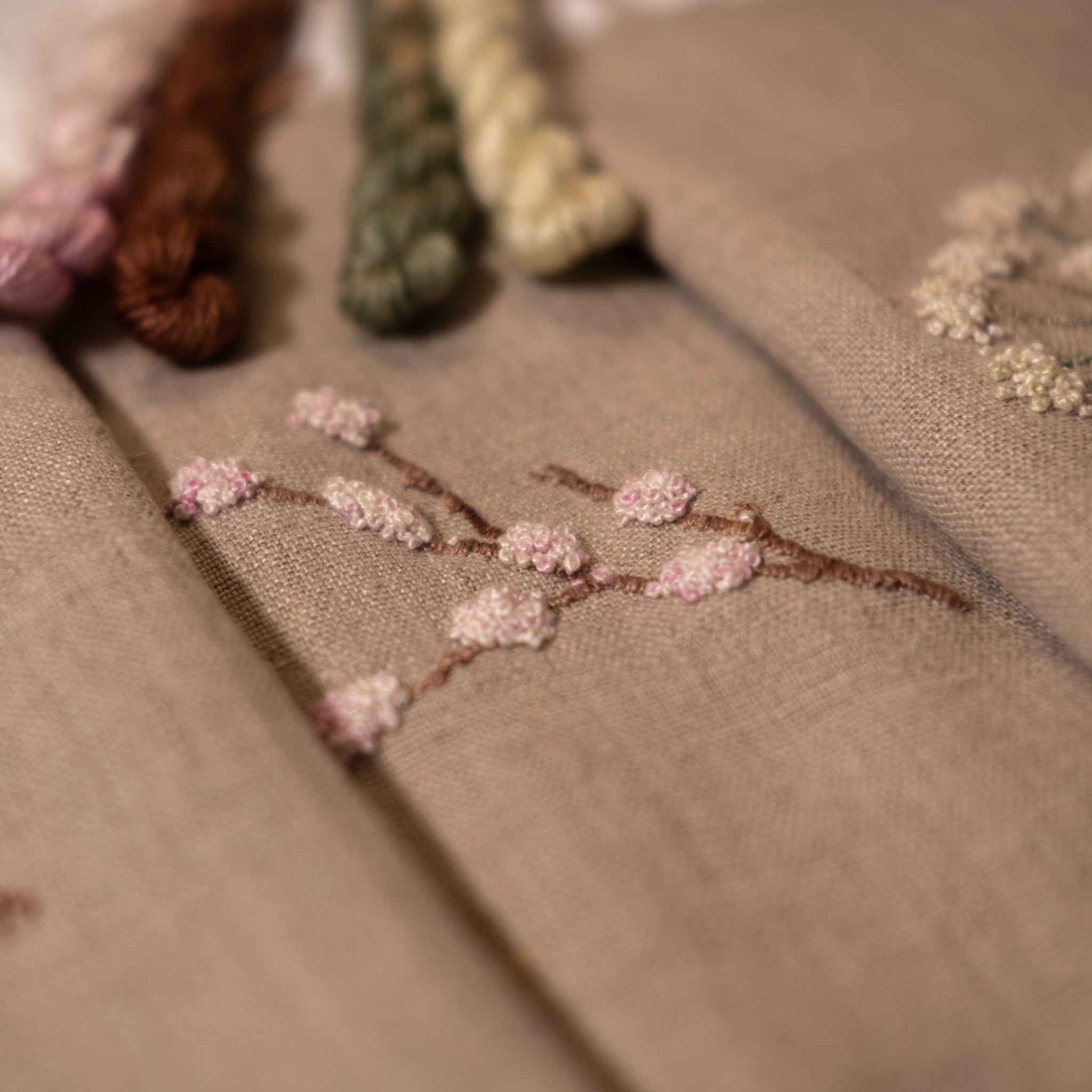 The first box includes four beautiful hand dyed threads and three little embroidery patterns very accessible for the beginner but equally an enjoyable stitch for the more practised stitcher.