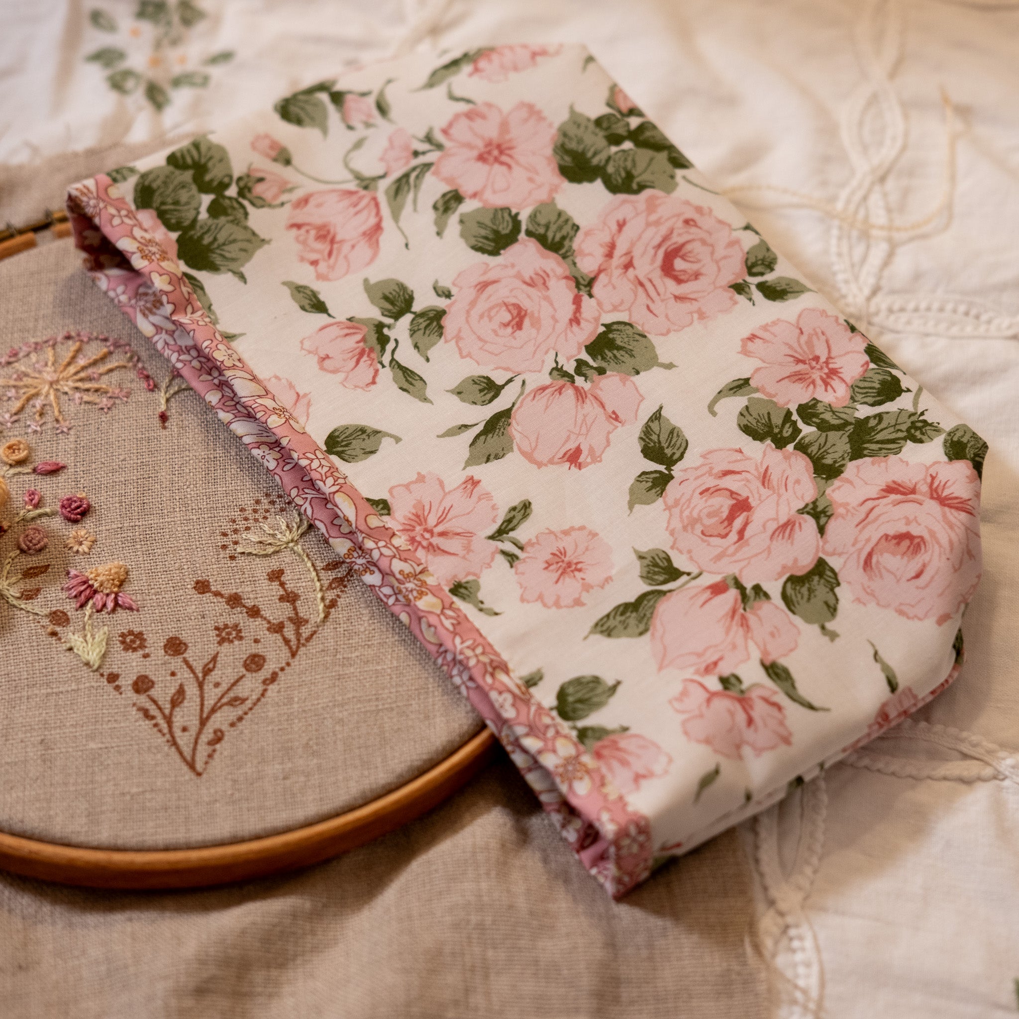 There is the option to add on either a drawstring pouch or a box pouch made by Sherry, both sewn in Liberty of London tana lawns - Carline Rose and Lizzy patterns.