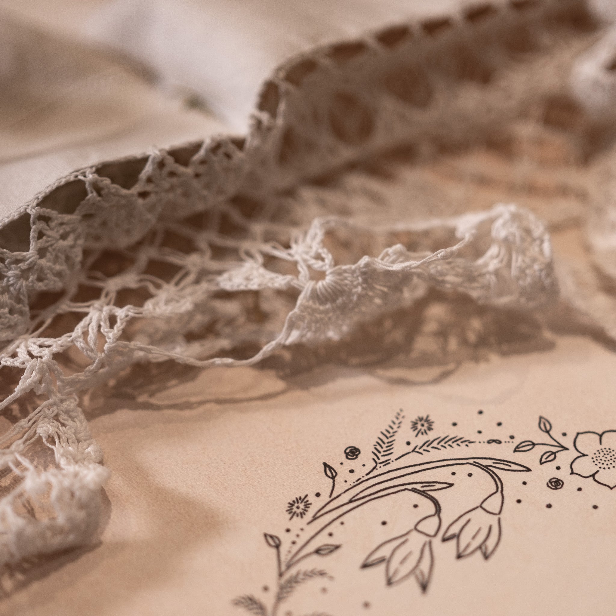 The pattern is printed onto a pure linen fabric.